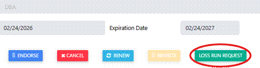 5. UI will display “Request Loss Run” button
