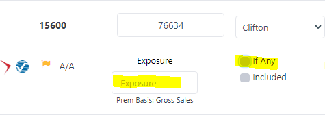 - If an exposure amount is entered AND the "If any" option is selected then no premium will apply in the calculation (see Loc. 1 & 2 examples below)